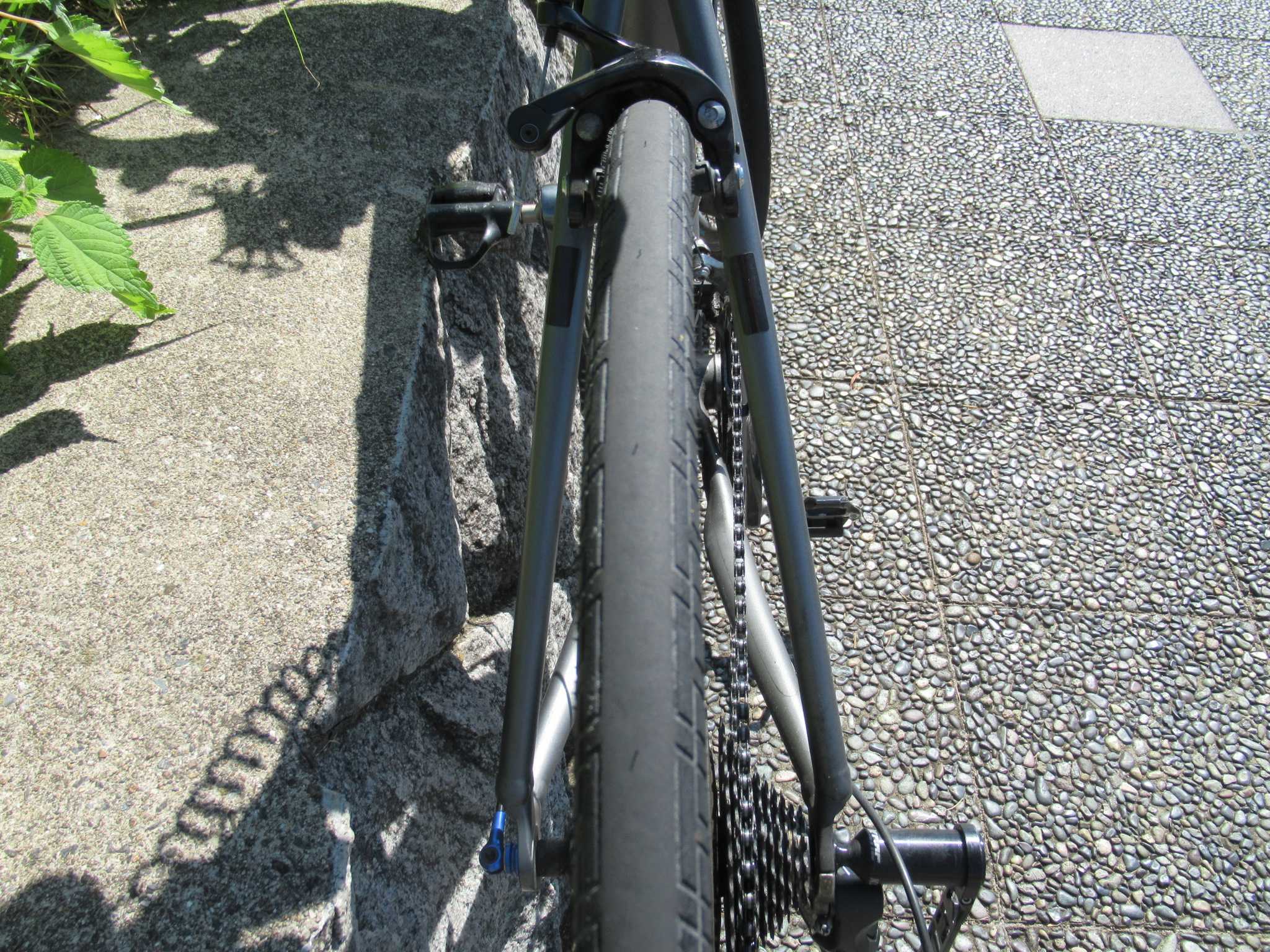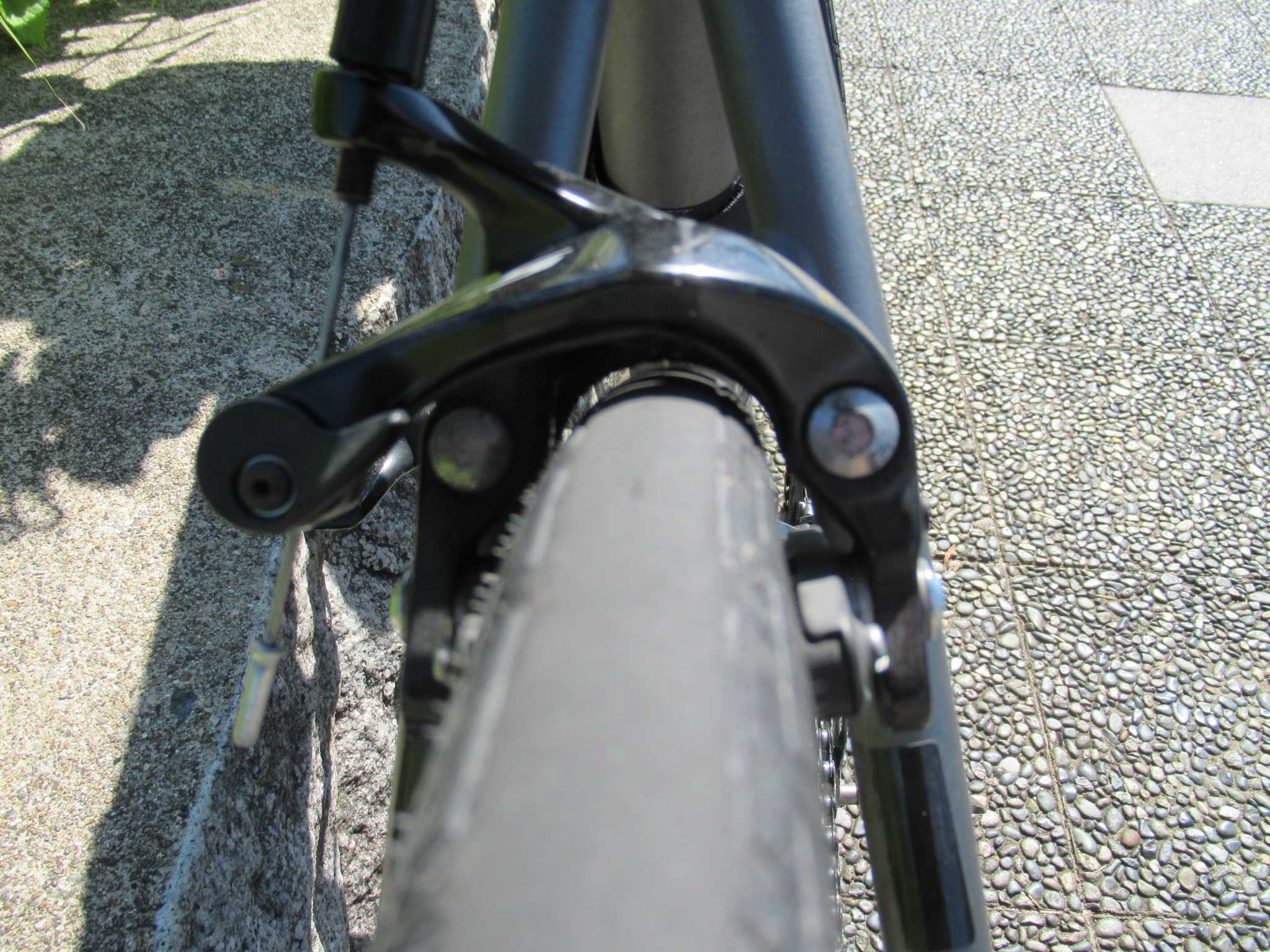 シマノ105のキャリパーブレーキ仕様ですが、結構28Cでギリギリのオフセット。