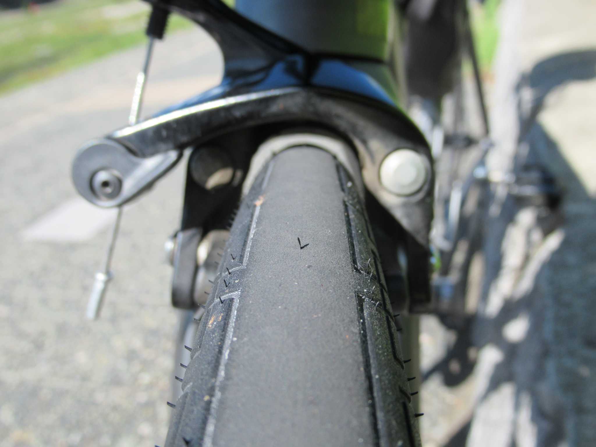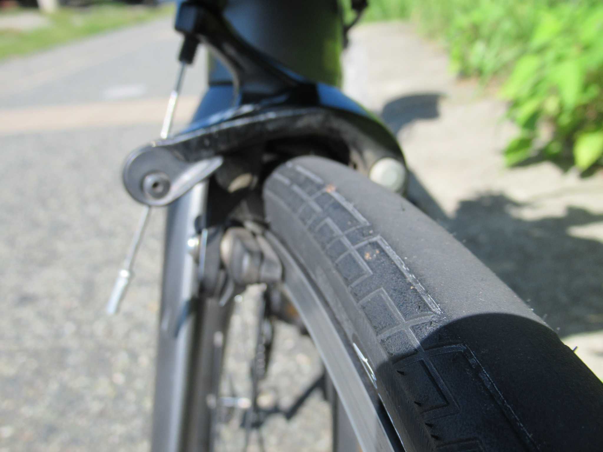 因みに以前のタイヤは,コンチネンタルGP3の25Cですが、約2年間の使用でパンクが全くしませんでした。とても優秀なタイヤですが、2年も使えば減りますしヒビ割れも多く成り、交換しました。