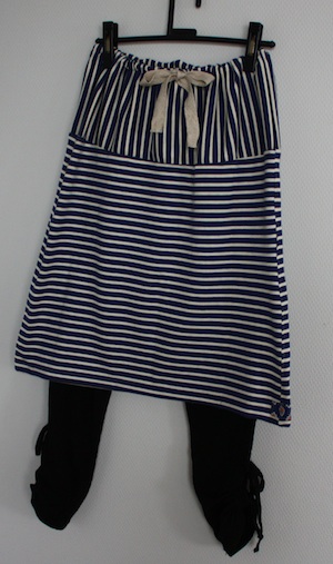 ボーダーのスカート出来た。ストレッチ素材の紺色×オフホワイトありそうだけど、紺色の部分が多いものは意外と売り切れていたりして手に入らないので作ったら早かった。ウエストは、緩いゴムを入れて、麻のテープを通してみました。ソーイングpoche vol.4にあったのを、ウエストに布を足して丈をのばしてみました。だっておばちゃん、膝上丈とか恥ずかしい☆ワンポイントソレイアードの存在感ってすごいねぇでも、小さいボタンも付けてもいいなぁこちらを買うか、作るかで迷った。使ったのはこの布と、このひも