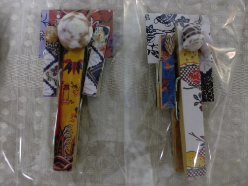 宮古島から移住して家族展の様子 6今回の展示会で出品した私の小物はメモクリップ(3本で1セット:100円)です。表には沖縄の型染である「びんがた」の柄を貼り、小さめの貝を先端に付けました。大小3個のメモクリップを止めている台紙も「紅型」文様を貼りました。写真では見えませんが、裏側には薄い板状の磁石を貼りつけました。冷蔵庫などにくっつけて使えば便利そうとか、きれいとか思ってもらえたのか、準備した30個が完売。さらに、「追加で40個作ってほしい」との依頼があり、家族展の終了後に大急ぎで作りました。もう一つ、ストラップ(1個300円)も15個準備しました。左の物は、ビーチグラスを極細のワイヤーで固定し、取り付け金具に固定しました。ワイヤーは、ビーズ作品用の物を2本準備し、自分で編んでひも状にした物です。右のは、ひもでビーチグラスを固定・・・。これも、数個しか残りませんでした。会場には前回(一昨年)同様、大勢の人が訪れてくれました。母も、何年振りかでお会いする人たちと談笑するなど、楽しいひと時を過ごせたので、展示会を開催して、本当によかったです。