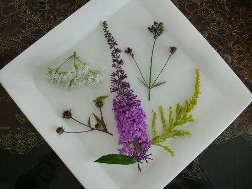 宮古島から移住してせいたか秋のキリン草毎日、何度か(30~40分/回)散歩に行っているんですが、昨日(お昼)は、いつもの散歩道から少し外れた所に行ってみました。そこで、一面に咲く「せいたか秋のキリン草」を見ました。もうすぐ咲きそうで、つぼみが黄色くなっている先端部分を摘み取ってきました。他にも4種類(いずれも名前はわかりません)。これらを大きめの白いお皿に配置し、少しだけ水を入れて、テーブルの上に・・・。嫌われ者の「キリン草」も結構きれい・・・と、一人悦に入っていますが、家内は「そのうちに花粉が出てきたら困る・・・」と、心配しています。