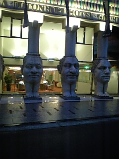 喫茶店もどこもいっぱい。結局、同窓会場近くまで来てしまい、なんとか喫茶店へ。しかしさすがに会場近くだけあって、店内には出席者らしい人が店に入った私達の方をじーっと見ている。どうやら知り合いみたいだか、私は全く記憶にない。友人の一人はわかったみたいだが。他の二人はちゃんと卒業アルバムを見て来たらしいが、この事もあってこの先、非常に不安に因みに写真は会場のホテルの入口の柱。