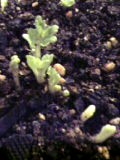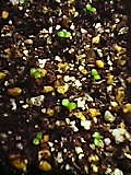 ジギタリス「サットンズアプリコット」が発芽。まだものすごく細くて小さくて、なんだかアルファルファのよう。め組の芽!