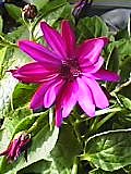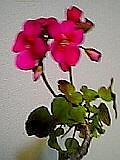 年始のあいさつに伯母のところへ。例のカレンも伯母にあげてきた。でも実は挿し木用に下の方の葉をこっそり取っておいてあるのだ。ところで、今、私はチェリーセージのようなチェリーピンクのゼラニュームを探している。2、3日前に急にそれを使ったプランを思いついて欲しくなったので、まだ全然探せていないのであるが、欲しいとなったら今すぐにでも欲しいのが人情。春までなんて、待ってられない。そういえば、伯母のところに、私達が引っ越す時に置いていったゼラニュームでそんな色のがあったはずと思い、まだあるか尋ねてみると、健在で今も咲いているとのこと。(注:3年半前まで私達が借りていた部屋を伯母が引き継いで住んでいるのだ)そのゼラニュームは私達がまだそこに住んでいた時点で、もういつからあるのかわからない位前のもので、長年放ったらかしなのにベランダの隅っこで1年中健気に花を咲かせていた。「ゼラニュームはとにかく丈夫」というイメージを私に植え付けた張本人なのである。記憶の中ではもっと深みのあるチェリー色だったのだが、実物は目がチカチカしそうなショッキングピンクだった。まあいいかと思い、「挿し木にしたいから一枝もらってっていい?」と言うと、伯母はシャベルとビニール袋を出してきて「好きなの何でも持ってきな」と言うので、ありがたくひと株丸ごと頂戴してきた。どピンク