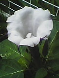 「庭のあれは悪なすびではなくて、変な悪ラッパみたいのでしたね。気がついてた?」と書かれたメールが母から送られてきた。“庭のあれ”とは花壇後方に私が植えたダチュラのことなのだが、どうやら母はそれを雑草だと思い込んでいたらしい。そういえば、前にも「庭に悪なすびみたいのが生えてるよ」と言われたことがあったが、その時はまさかダチュラのことを言っていると思わなかったので、確認もせぬまま、「じゃあ、正体がわかるまで(花が咲くまで)そのままにしておいたら?」と答えたのだった。_そしてそれが今日、開花に至ったというわけ。黄色と紫、2株植えたうちの紫の方だ。ダブル咲きなので、完全に咲くともう少しゴージャスになると思う。この、「悪さ」がいい。確かに「悪」で「ラッパ」だ