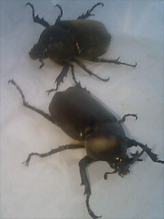 今日は夜勤が早く終わったのでカブトムシ捕りに出かけました。最初メスのカブトムシをゲットオスは見当たらないので土を掘ることにしました。メスのいた木の周りの落ち葉をどかしているとカサカサと音が聞こえました。カブトムシがこの下にいると感じ土と葉の混ざった柔らかい土を5センチから10センチ掘るとオスのカブトムシ発見。今日はオスとメスのカブトムシをゲットです。かぶちゃんがカブちゃん捕まえました。少し小さいカブトムシだけどとっても元気です。動き回って写真撮るの大変でした。