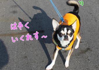 おさんぽれす~♪おかたん、なんでとまるれすか?あ、しゃしんれすね。はい、ぽーず・れす☆もうしゃしんはいいから、はやくいくれすー!ブログ村 スムースチワワ☆人気ブログランキング☆またしゃしんれすか?もうっ、おかたんはとまってばっかりれす~。