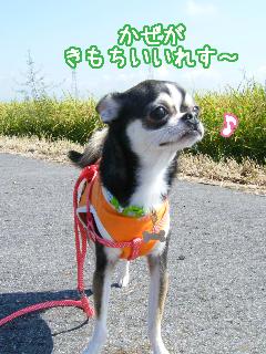 きょうは、はれまちた!おかたん、おさんぽいくれす~。「はいはい、行こうね(^^)」は~、かぜがきもちいいのれす~♪ブログ村 スムースチワワ☆人気ブログランキング☆「れんくん、喜んでるところ悪いんだけど、明日はまた雨だって~」え~~、こまるのれす~。