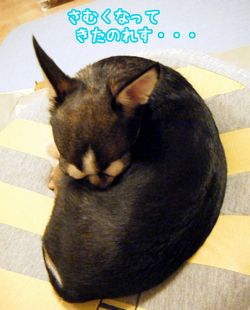 「れ、れんくん?・・・なんか、コンパクトだけど」さむくなってきたのれす・・・「あ~、今日は雨が降りそうだしね(^^;)」おかたん、だっこしてくらさい~。ブログ村 スムースチワワ☆人気ブログランキング☆はーおひざ、ぬくぬくれす~。