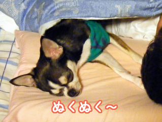 あっ、おとたん、もうねるれすか?れんくんも、いっしょにねんねしていいれすか?「そうだな~、寒くなったし、一緒に寝るか」わーい、おふとん、ぬくぬくれす~♪♪♪ブログ村 スムースチワワ☆人気ブログランキング☆おかたんもいっしょにねんねするれす~。