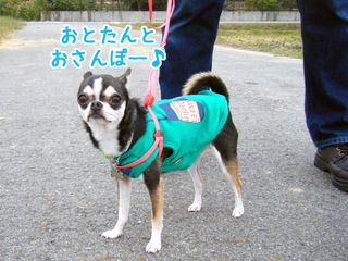 おとたん、きょうはおしごとはやくおわりまちた。「よーし、れん、散歩に行くぞー」わぁい、いくれす~☆えへへ、おとたんとおさんぽれす~♪ブログ村 スムースチワワ☆人気ブログランキング☆おとたんとおさんぽ、うれしいれす~♪
