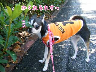 あっ、ねこさんがいるれす!「ほんとだね~、れんくんを見たら逃げちゃうかな?」えー、にげないでほしいのれす。あっ、わかりまちた!かくれればいいのれす~♪ブログ村 スムースチワワ☆人気ブログランキング☆どきどき、ねこさん、まだいるれすか~?