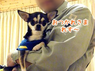 おとたん、きょうもおそいれすね~。「定時で帰ってくることは、まずないからねぇ(^^;)」あっ、かえってきまちた!おとたん、おつかれさまれす~☆ブログ村 スムースチワワ☆人気ブログランキング☆れんくん、ふみふみまっさーじしてあげるれす~♪