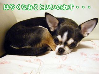 おとたん、かぜぎみれす。おかたんも、たいちょうわるいのれす。「うちで元気なのは、れんくんだけだね~(^^;)」れんくん、しんぱいなのれす。はやくなおるといいのれす~・・・ブログ村 スムースチワワ☆人気ブログランキング☆れんくんが、ゆたんぽしてあげるのれす~。