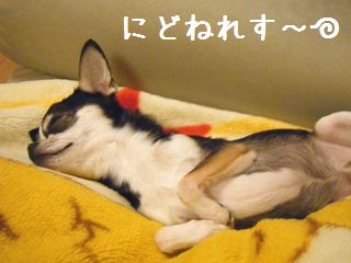 ぱらぱらっておとがするれす。「あらら、今日も雨だねぇ」あめれすかー・・・しょうがないれすね。じゃあ、ごはんもたべたし、にどねするのれす~。ブログ村 スムースチワワ☆人気ブログランキング☆あさね、ひるね、もちろんよるもねるのれすー。