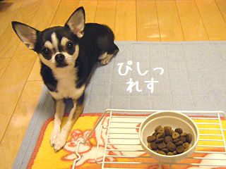 「れんくん、ごはんだよ~。まて、は?」はいれすっ、ぴしっ!「えらいえらい(^^)」ふせもまても、かんぺきなのれすー。ブログ村 スムースチワワ☆人気ブログランキング☆おかたん・・・きょうは、ささみのってないれす。「あ~、昨日は夕ご飯に鶏肉を使ったからね~。今日は鯖だから」・・・が~ん、れす。
