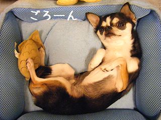 あめふりそうれす。こういうときは、おふとんでごろごろするれすー。「ごろーんしてるねぇ、いいこいいこ(^^)」えへへー、なでなですきれすー。ブログ村 スムースチワワ☆人気ブログランキング☆おなかも、なでていいれすよ?「はいはい、いくらでもなでますよー(笑)」