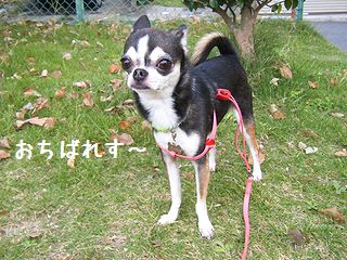 おちばれす~。「すっかり秋だねぇ」あしもと、かさかさするれす。おもしろいのれす~♪ブログ村 スムースチワワ☆人気ブログランキング☆おちばあつめたら、やきいもできるれすか?「ん~、たき火は危ないから、今度うちでおいもさんふかそうね(^^)」