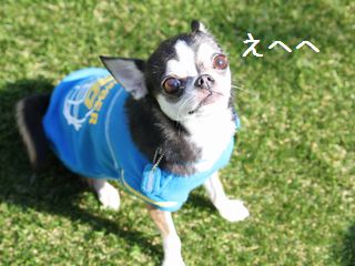 おでかけ~、おにわわんに、おでかけ~♪「ごきげんだねぇ(^^)」おてんきもいいし、おとたんもおかたんもいるれす。れんくん、うれしいれす~。ブログ村 スムースチワワ☆人気ブログランキング☆「ごきげんなところ悪いんだけど、午後はお留守番お願いね~」あう~、しかたないのれす~。