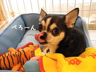 「ただいまぁ。いい子にしてた?」おかえりれすー。れんくんは、いつもいいこなのれす。さ、ほめてくらさいー♪ブログ村 スムースチワワ☆人気ブログランキング☆「えらいね~、れんくん、かしこいね~」えっへん、れんくん、えらいのれすー。