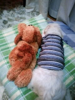 このわんちゃんは、かなり気に入っているみたいで、時々振り回して戦いを挑んだりしています。