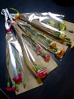 1本、1本の花束のリボンが、花の色と一緒だったことです。