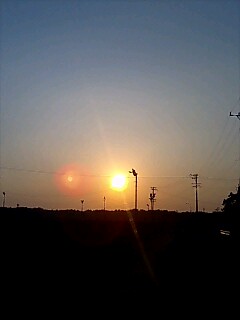 疲れの取れない体で、帰路に着こうとした時に、見えた茶畑からの夕陽です。