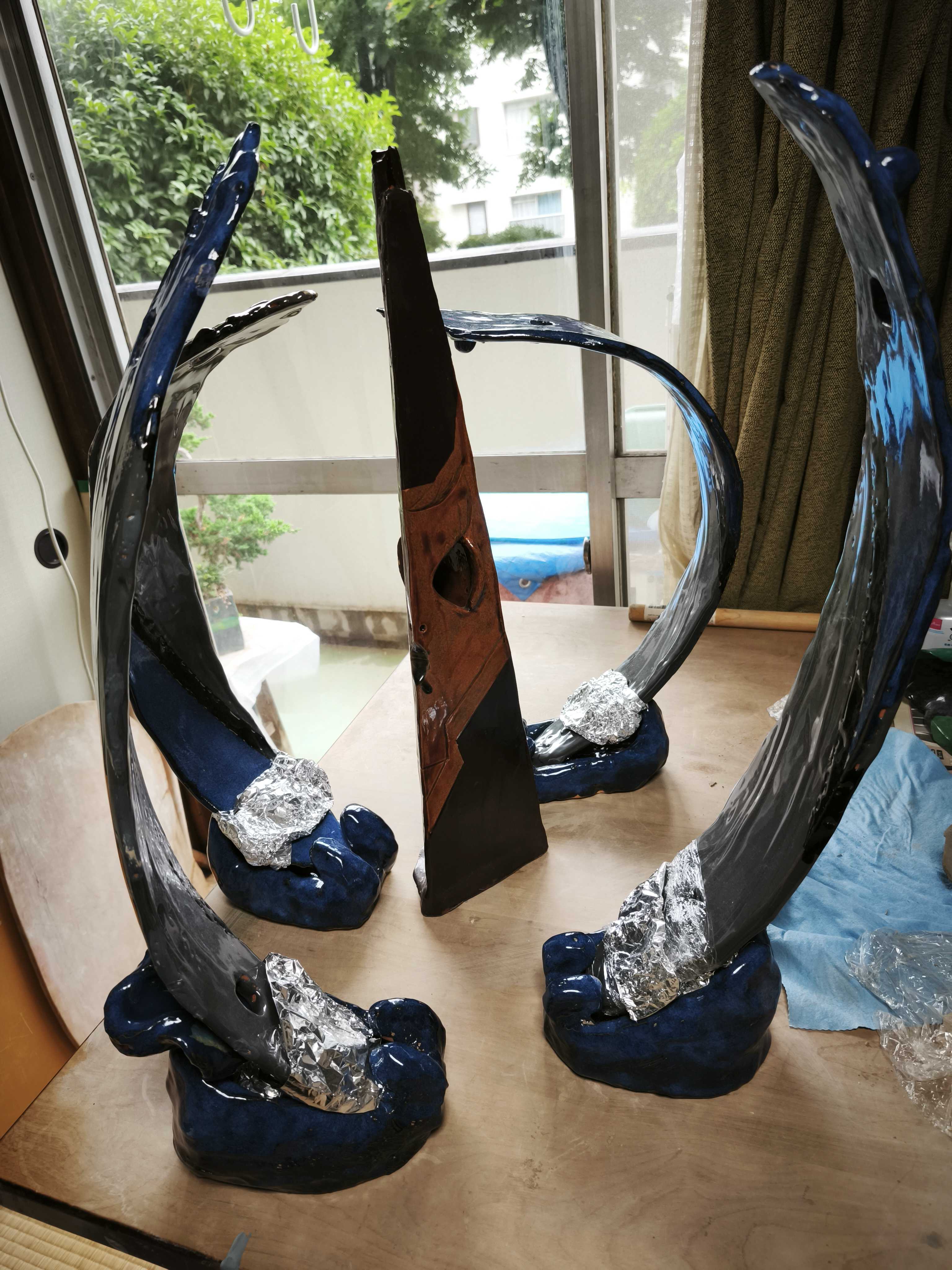 ほぼ完成品ですホテルのロビーやウィンドウのディスプレイ用として作陶。展示のしかたにもすこしのくふうを!皆さん見にいらしてください、現物は写真とは違いますので。Instagram :tougei7, facebook,そしてyoutubeには動画を乗せます。