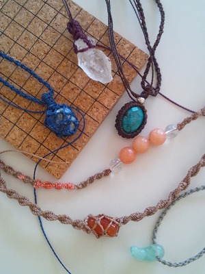 もう、2月も終わりですね~日記ご無沙汰しちゃいました。。最近は、イベント用のアクセサリーの制作に夢中になってました!ひたすら、紐を編んでいく作業は結構ハマります。次回の大磯市には色々連れていけそうです~お楽しみに☆まだ余り紐の処理していませんが…。