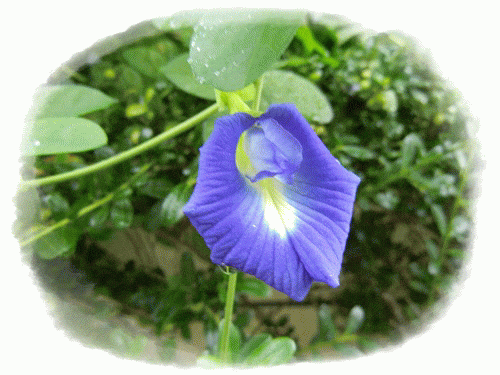 チョウマメ今朝も、透明ワンコのリッキー&ノエルと一緒に、朝のお散歩へ出かけた。早朝まで雨が降っていた様で、道路が結構濡れている。万福寺へ行ってみると、ウェルッシュコーギー・カーディガンのチャコリンちゃんと、柴犬のシェリーちゃん&チャーリーちゃん姉妹がいたので、代わりばんこに沢山ナデナデしてあげた。昨日、シェリーちゃんは体調が悪そうだったが、今朝は元気そうだった。数日前に、ご近所のお宅で面白いお花が咲いていた。後でグーグルレンズで調べてみると、チョウマメと言うお花の様だ。別名をバタフライピーと言うみたいで、涼しげでとっても可愛らしいお花だ。このお花は、種からも育てられるみたいなので、今度、種が出来ていたら、少し貰ってこよう(笑)。