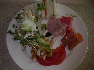 昨日は、ばぁばとRIKUとママの3人でランチブッフェに行ってきました~そこは結婚式&披露宴もできて温泉もあって宿泊もできるところ。(←ホテルなのか??よくわからない・・・笑)普通、温泉だけでも1000円ぐらいするので、ランチ&温泉で2310円とお得。そんなわけで3人で行こうかぁ~ってことになりました。RIKU・・・こういう落ち着いたお店は初めてなのでおとなしくしているか少々不安だったが愚図ることもなく、暴れることもなくただ少々うるさかったが、比較的おとなしかったと思う(σ~`*)ふぅんランチは・・・ブッフェスタイルv(。・ω・。)ィェィ♪だったのでRIKUにはちょうど良かったかな。洋食と和食両方あって種類も豊富で美味しかった。しかも、食べ放題ってとこがいいね(笑)。↑とりあえず・・・サラダ、お刺身・・・前菜系を盛り付けてみた。↑これは・・・メインのローストビーフ♪RIKUの分まで用意してくれて・・・もちろんお肉嫌いのRIKUは食べなかったので、ママが二人分頂きました。っていっても、このローストビーフも食べ放題なんだけどね。↑やっぱり最後はデザート♪デザートだけでも種類が豊富で、この他にもシュークリームやパウンドケーキなんかもあった。写真に写りこんでいる手はRIKUのです^^;イチゴが欲しくて、待ちきれない様子(笑)。RIKUが、フルーツの盛り合わせのイチゴばかり食べていた(笑)。写真に撮ってないけどこの他にも、パスタやチキンの照り焼き・・・ちらし寿司や六穀うどん・・・いろいろあって、もうホント大満足v(≧∀≦)vRIKUは、大好きなパスタがあったので超ご機嫌で食べていた。そのパスタ・・・ぺペロンチーノだったので、ガーリックのニオイがすごかった^^; お腹もいっぱいになり、大満足のママとばぁば・・・ばぁばが休憩したいというので、芝生の広場のベンチでお昼寝RIKUとママは、またまたボールで遊んだりシャボン玉をしたり・・・遊んでました。最近、お出かけ三昧のRIKUとママ・・・今日からGWで、とうちゃんも実家に来る。今度は、どこに行こうか・・・(´・ω・σ)σ*。。*★*。。*――ёйd――*。。*★*。。*●可愛い子供服●