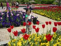 昨日もお天気が良くて暖かい日だったのでまたまたRIKUを連れて、ばぁばと3人でお出かけしてきました。今回は『木曽三川公園』へチューリップ祭りを開催していましたつい先日『なばなの里』でチューリップ祭りを見てきたけど・・・『木曽三川公園』は、岐阜、愛知、三重の県境っぽい場所にあって実家からも車で1時間ちょっとで行ける。(住所は岐阜県)国立なので入園料無料(←これがかなり良い。)平日なのに人が沢山来てました。チューリップ祭りも明日の日曜日で終わりらしいので今がホント満開って感じ。すごくキレイだった。 ここは公園なのでとても広い芝生のスペースがあって、子供が走り回るにはちょうど良い。RIKUは、園内に入った瞬間周りの子供達がボールを持っていることに気づき『ボール、ほしい!ボール、ボール!!』っと要求。家にあるのを持ってくれば良かったなぁ・・・なんて思って家にあるから、と我慢させようと思ったがもちろん無理で・・・しょうがないので買ってあげました( *・д・)っ□RIKUは、そのボールで超嬉しそうに遊んでました。お昼前に着いて、外でご飯を食べてその後、ひたすら遊びまくり。止まることなく走ったり、ピョンピョンしたり・・・・お出かけすると、しみじみ感じる・・・子供の体力って凄い!凄すぎる!!ヽ(*゚O゚)ノ スゴイッ!!! おやつに『さくらのジェラート』を食べて大満足。今年は本当に春を満喫しました。帰り際に、ミッフィーと一緒に写真を撮れるイベントがあってRIKUと一緒に写真撮ってきました以前は着ぐるみを見て泣いていたRIKUですが昨日のミッフィーは、泣かずに握手までしてました。やっぱりミッフィーは好きなんだね^^;この公園、ミッフィーがキャラクターになっているのか・・お花でミッフィーができていて、展望台に上るとキレイにミッフィーを見ることができる。ミッフィーと一緒に撮った写真にはママも写っているので今回のアップはミッフィーのみで(笑)。昨日も楽しい一日になりました。*:..。o○☆ *:..。o○☆ *:..。o○☆ *:..。o○☆ *:.
