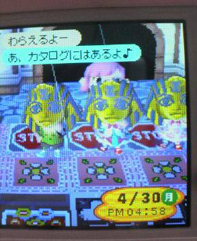 昨日は 午後からフルーツ村のももちゃんの所に遊びに行ってきました♪なおちゃ ケイさん ももちゃんそして背後から3人を操っているくみくみちゃん ツタンカーメンをかぶってリアクションをすると無表情でかおもしろいんだよね実は昔からやっていたのですがw2006.04.04の日記でも同じ事をやってるし(お暇な方は見てください 画像わるわるですが・・・)楽しい時間を過ごしてお開き寸前にリセットで強制送還されました 村に帰ってみると不思議な事が!!遊歩道のデザインが変わってるなんでだろうと思ったけど理由がわかりましたももちゃんの村でデザインを頂いたのですが空きがなくて 遊歩道に使っていたデザインの上に上書きしちゃったんですよ上書きしちゃうとそのキャラで貼ったデザインって新しいものに変わってしまうんですね森を長くやっていますが 初めて知りましたうちの子は前から知っていたらしくて「そんな事も知らなかったの?」って言われましたが 夜は久々にぷりん村のころんちゃんの所にお出かけしてきました前の日記で残りのアイテムを書いたところ譲っていただける事になったのかなり遊んでなかったので色々お話してきましたこれで残りのアイテムは役場の模型と ハニワになりました 本日より週末まで帰省しますパソコンが使えないので(ケータイも!)みなさんのブログ巡りやコメントのお返事が遅くなってしまいそうです帰ったらまた遊んでくださいね
