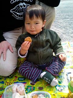 ←滑り台に1人、ヒヤヒヤもん←頬張って食べてオエってなったりする。 今日は張り切っておにぎりをこさえて2人で散歩。色んな柄の入ったゴザがお気にのはやクン、ちゃんと座って食べてくれた(^з^)。その後、ブーブーを使って走り散歩に。天気も良くて二人やったからか結構隼人も私がいるのを確認しながら動いてくれた(o^v^o)しばらくして砂場で3歳のマソラくんっていう子とお母さんと知り合って、色々しゃべってて、隼人はマソラ君のおもちゃで遊ばせてもらったり、別の所に遊びに行ったりしてた。しばらくして遊具のエリアに行ったから移動して追いかけるといつもよりその遊具で遊んでる子が少なかったせいか、今までは大きな段差には足をかけなかったのが反動を使って脚をかけて上ったり、広い大人と一緒に滑れるくらいの滑り台も思い切り滑り出した。(上の写真は『危ないっ!!!』って手が出たもの。)ヒヤヒヤしつつも一応男の子は活発が一番!!って思ってることもありついてはいくが見守ってたけど何しろ隼人よりも大きい子で隼人がもたもたしてると先に行こうと押しのけようとされてしまい、ちょっと危ない目にあう事もしばしばあるので傍に行ってみたり離れて傍観してみたりを繰り返してた。 6時か7時に起きてた隼人、もうすでに1時を過ぎ、眠いはず…なのに帰ろうか?ってきい手も一向に辞めようとせず、仕方なく気が済むまで遊ばせた。で、結局、買い物に行かんと…ってこともあり2時間半で切り上げたのでした。 変わって夜、やはり夕飯後も昼寝はしたものの1.5時間のみだった為かずっと不機嫌。それにともない、私も散歩ですっかり疲れ、イライラ気味。で、やはりバトルを繰り広げていたのでした。そして10時。パパが今日は帰ってくるとあってずっと眠いのにソワソワ玄関を行き来し、パパに会え、いつものごとく調子に乗り、寝たのは0時。(-o-;) せっかく帰ってきて悪いけどテレビと電気をガンガンつけてるパパにムカつきまくった私なのでした。(;-_-;)