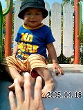 今日は張り切っておにぎりをこさえて2人で散歩。色んな柄の入ったゴザがお気にのはやクン、ちゃんと座って食べてくれた(^з^)。その後、ブーブーを使って走り散歩に。天気も良くて二人やったからか結構隼人も私がいるのを確認しながら動いてくれた(o^v^o)しばらくして砂場で3歳のマソラくんっていう子とお母さんと知り合って、色々しゃべってて、隼人はマソラ君のおもちゃで遊ばせてもらったり、別の所に遊びに行ったりしてた。しばらくして遊具のエリアに行ったから移動して追いかけるといつもよりその遊具で遊んでる子が少なかったせいか、今までは大きな段差には足をかけなかったのが反動を使って脚をかけて上ったり、広い大人と一緒に滑れるくらいの滑り台も思い切り滑り出した。(上の写真は『危ないっ!!!』って手が出たもの。)ヒヤヒヤしつつも一応男の子は活発が一番!!って思ってることもありついてはいくが見守ってたけど何しろ隼人よりも大きい子で隼人がもたもたしてると先に行こうと押しのけようとされてしまい、ちょっと危ない目にあう事もしばしばあるので傍に行ってみたり離れて傍観してみたりを繰り返してた。
