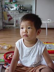 最近の事。 隼人君、20時になると必ずといってイイほど。・゚゚・o(iДi)o・゚゚・。うぇぇんって泣きじゃくる。、、、、、、、、、(-_-;)ムゥ 私も困るのだ。だって泣くのは必ず『パパ~っ』なのですもの。パパが帰ってくるようになって半月が済み、パパはだんだんと遅く帰ってくるようになり、朝は早い。今日も23時。隼人は多分、ママとは違った遊び相手を欲している。しかも言う事を聞いてくれ、殴っても怒られず、一緒に筋トレしてくれる?!やさしいパパ。を。・・・・・・でもさ、しゃーないやん!!(しょうがないの意)(ι´゚,_っ゚)ゞポリポリ…こればかりはどうしようもない。 ってな事で、今日は隼人の日中の希望を叶える為、ママは頑張った。(っていっても簡単なんやけど…)。電車ならぬ車でゴー!!!ジャスコに行って来た。ここでは熱中症にならず、走り??回れてしかも買い物も出来る。子供たちの遊び場もある。隼人が毎日『ブーブー、いこ』って言って私に車を出せと催促するもんやから何だかんだいって運転も楽しくなってくるほどに。 で、子供の広場に行ったら前まで大好きやったアンパンマンの乗り物とかに全く興味なく(#O_o#) Wao!! 、興奮しながら走りついたのはコレ→そう、車。また車かよっ!!(三村風に)ウロウロウロウロしまっせ!!しかも車のマシーンの周りを。何回も乗っては降りて乗っては降りて・・・・・(_ _ ;;)/◇"まいったあ君の車好きにはホントに。で、夕方、帰ってきて夕食…の前に寝てくれちゃったので、最近気になっていた伸びてきた髪の毛をカット。でもちょっと起きるのが早くて起きてても(嫌がるのを無理やり)切ってやった!!こんな感じ。わかりにくいね。→