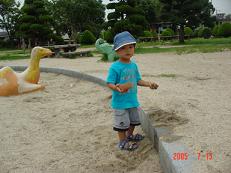 とうとうはれた!!! わたしゃこの晴れをどんなに望んだ事か。だって雨はほんとに良いことがなくて...熱はでるわ布団は湿気るわ挙句の果てに襖が湿気でたわんでた。(ほんとに熱が出てたときに・・・・)。ってことで今日は布団を干し、10時から(予報は昼から雨)散歩へ。隼人はもう自転車に乗ってる時から超興奮状態(^^)。行ってからも水を汲んで遊んでると思ったら、滑り台を滑ったり…落ち着かない感じ。まぁでも連れて来れてよかった。 ただ、昨日から私、出血し始めてて・・・あんまり長々居るのもな~と泣く泣く隼人を連れて買い物に行き、帰ったのでした。 …多分、ダメなように思う。どんどん生理出血のようやし。病院の先生が診察に行った時『ダメな時は身体が排出しようとすることもあるからね。』って言ってたアレっぽい。とりあえず案内のプリントには2,3日は様子を見てから来院する指示やからそれに従おうと思う。パパはきのう出血を告げた時、『変に弱い子が生まれるくらいならちゃんと丈夫な子が生まれてくれた方がいいんちゃうか(これもきっと私に対する慰め)』って。私は医療に関わってたからあんまり(切に望んでる人には大変失礼かもしれないけど...)が~んっとはなってなくて細胞に異常があったから成長できずに流れた。と捉えてる。次頑張ろう。今回はタイミングが悪かった。ついでに言うと、ダイサッカイやし。みたいな。隼人ができた時も思ってたんやけどきっと運命があってこの子は最近喧嘩ばっかりだった私たちの絆を深める為にやってきてくれたんだろうと。・・・・・・・・とか言って病院行ったらしがみついてくれてたりして・・・無理か。 喜んでくれてた皆様、チョッと暗くさせてごめんね。