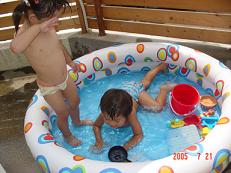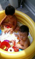 今日は陸pのおうちでプール♪いいでしょ(o^v^o)。陸pは気の毒な事に隼人が興奮してプールで暴れ回るからかわいそうな事に泣いちゃって(*/□\*)うわぁ~ん・・・・・・子供はほんとに元気。疲れてても結構寝ることもなくただ今就寝中(笑)。後は仲良くあそぶんだ~♪??