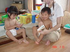 今日は1歳半検診の時に隼人が活発で私が疲れるってことで4ヶ月後フォローの日。 あの時とは大きく違う事はパパが帰ってくる生活になったこと。 それはこないだ電話で説明した。今、気になってるのは来年引っ越す事。今のような環境なら隼人の友達もいるし協力してくれるママ友も友達もいる。なんといっても生まれて育ってきた隼人の環境。でも来年そうそう引越しするとなると友達もいない(お年寄りが多いからその可能性大)今のような考えの合うママ友もいない。。。。。。ではほんとに不安(行きたくなくなるくらい)。 まぁそれをいってもきりがないのでとりあえず隼人の成長のフォローは今後引越しする土地の保健所に伝えてくれるとのことに。 今困ってる事は車が好きで飛び出しそうになること。これは先生に相談。 で、肝心の隼人君。 先生が○▲■の積み木のようなものを同じ型にいれさせたり、赤とブルーのカップの片方に犬のマスコットを入れて場所を変えてどっちにあるか当てさせたり、・・・・・・・・さまざまなテストをした。 でも、やっぱり集中力が続かない(T-T)。興味津々に先生の荷物を見に行ったり挙句の果ては個室の中をグルグル走り回る始末(p-"-q)ウーン。外に出てみんなと遊びたくて仕方なくなって先生の『はやとく~ん次はこれ』って言っても『イヤ!!』って言うように。 まぁ仕方ない。ありのまま診てもらわな判定できんでしょ。 そして 結果発表外にパワーを発散してるタイプ(これは前にも言われた)。共感性も達成感も感じるようにはなってきている。しかし好きな事しかしないんでこっちが強制したものに関してはしない。だから今後は1人で遊びがちなお気に入りのミニカーなんかでパパやママが一緒になって遊んで『コレやってみ』って課題を与えてやらせる。 二語文(ママ、イコーなど)はできてきてるから今から伸びるでしょう。 ママの言ってる事は理解できてきているけどまだわからない事も多いから車に飛び出すこともあるだろう。でもお母さんが『道路はママと手を繋がないとダメ』って教える事を長くかかっても続ける事が大事。 ママのダメのポイントと爺婆やパパと違う場合、『御爺ちゃんとこではよくてもおうちはダメ』って断固貫くこと。ギャーワーって言ってそれで『仕方ないなぁ…』ってこっちが折れることで『あ、ママ叫べばくれるんや』ってなっちゃうらしい。 やっぱり勉強になったし、隼人が前の検査の時と成長してる様子がおんなじ検査でわかるし、相談にも乗ってくれるし、反省もできる。子育てに迷ったり悩んだりしてる人にはオススメかも。ちょっとスッキリした。これからパパとがんばんなきゃ。 で、その後ちぃちゃん家に。またまたひろーいプールで遊ばせてもらい、お昼寝。結局夕飯までご馳走になって帰ってきたのでした。