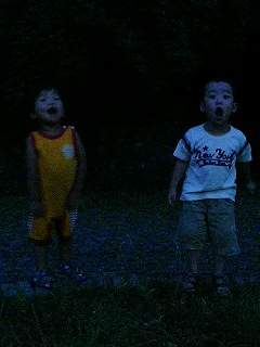 今日はパパのバァバのお見舞いに行ってその後パパママのお友達の子で壮君に会いに行って来た。o(^-'o)♪☆(o^-^)o~♪ この2人、前に我が家に来てもらってから結構仲良しで壮君が『ハヤトー!!』って遊んでくれるんだー。今日は壮君のおうちで夕飯をご馳走になってしかも今日捕ってきたカブトムシをもらってその後花火をしたのだ(☆。☆)キラーンッ!!ママは花火がだ~いすき(^з^)-☆ 楽しんじゃった!!隼人は火をつけるのはやりたがるけど花火は怖くてダメ。(ρ_-) 眠いのもあって抱っこ抱っこでした。でもほんとに楽しかった☆ありがとう!!!