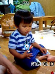 今日は喜ばしい事1つ。サンダルが自分で脱げた!!いいことだ!! いっぱいしゃべりも出来るようになってどんどん成長。 でも~、こんな事までするように...(><。)→これ、オムツの中のいわゆるチンを出して触ってる!!!おいおいおい!!!こんな時期にそんなに姓の興味があって大丈夫なんか??ママは先が心配や~!!!最近甘えたになって『抱っこ(はっきり言う)』『ぱっぱい こ(オッパイの事)』とかオッパイは服の外に出しそうな勢いで触られるし。ビデオを(ちゃんとした向きで)デッキに入れれるようにもなったし。ええんやらわるいんやら・・・・・。