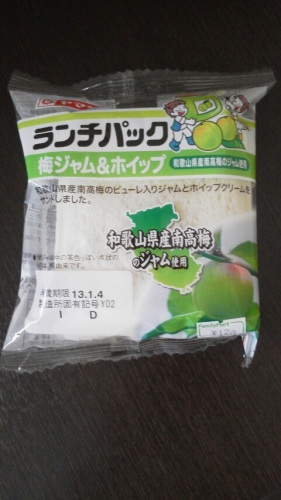 コンビニに、和歌山県産梅のジャムとか、奈良県産抹茶のクリームとか、滋賀県産ラズベリーだとか、近畿地方限定っぽいランチパックが並んでいました。一応、和歌山に来ているのだから……と、和歌山県産南高梅の梅ジャム&ホイップのランチパックを買ってみました。お味のほどは……奈良県産抹茶クリームにすればよかった……かも(ちょっと後悔)
