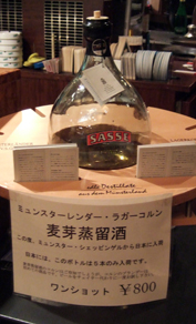 途中、かなり出来上がってしまった私は、一人で来ているドイツ人(彼もご機嫌に酔っ払ってましたが)のテーブルに乱入して盛り上がり、そこでおススメしてもらったミュンスレンダー・ラガーコルンというドイツの蒸留酒(写真)を注文! ドイツに蒸留酒があるなんて知らなかったのですが、焼酎とブランデーの中間みたいな、甘いけどすっきりしたお酒でした。個人的にクセになってしまいそう。