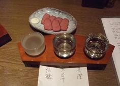 私が呑んだのは、真澄吟醸あらばしり、大信州しぼりたて生、仙醸純米生原酒うすにごりの利酒セット(写真)。これで500円です。安いです。