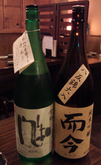 お酒のラインナップはちょっとマニアックというか、普段あまり呑んだことのないお酒がいろいろ揃っていました。私はいろいろ初めての銘柄にチャレンジしてたのに、同居人のチョイスは呑んだことのある「而今」と「南部美人」。(何故もっと冒険しないっ)