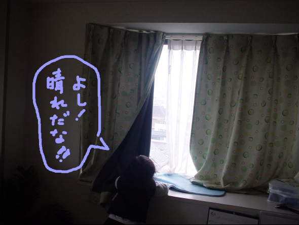 そうなんです。家族には、役割分担というものが不可欠です。ねぇさんの仕事には、拾ったゴミをゴミ箱に捨てる電気をつける、消すテレビをつける、消すリモコンでチャンネルをかえる食べ終わった食器を全てキッチンに持って行く離れたところにある物をもって来る・・・その他などなど私の都合のいいように思えることだらけですがそんな萌ねぇさんの仕事は朝からはじまります・・ まず~、起きたら出窓開けてねぇ~ 次はカーテンねぇ~ そうそうその調子 そしたら無意味に力也を起こしてねぇ~ 仕事はきちんと最後まで手段は任せます 力也!朝だぞ