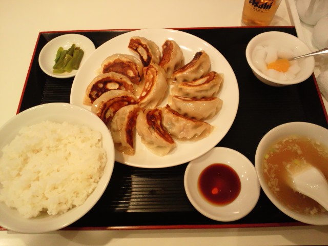 昼は、カップヌードルのミルクシーフードとカップスターの豚骨しょうゆにしました。なかなか美味しかったです。夜は、近所の恩豊園で餃子2枚とご飯セットにしました。よそだと餃子定食として呼ばれることも多いですね。このように、きれいに盛り付けされていると、食欲わきますね。美味しかったです。- 以上 -