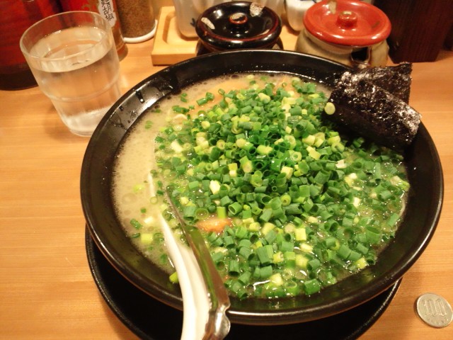 たまに自由が丘に行くファツゥです。自由が丘の北口を出て、すぐの店、博多ラーメン吉もん(きちもん)に行ってきました。ここのネギラーメンがメニューを見てもすごいので、食べてきました。こんな感じです。ネギの下にチャーシュー1枚、豚角煮、メンマ、もやしが隠れています。これで850円です。餃子も半人前200円頼みました。美味しかったです。ネギ好きには大満足の1杯だと思います。