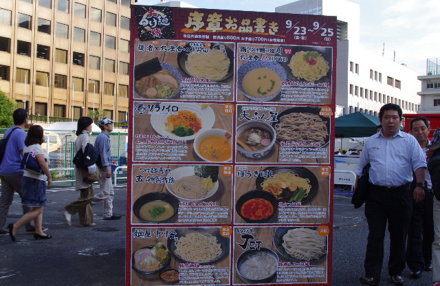 ファツゥです。整骨院の通院後、駒沢公園中央広場で行われている、「東京ラーメンショー2011」に行ってきました。今回の画像はすべてPENTAX K-rです。でかいのでリサイズしてます。田園調布からバスに乗ると駒沢公園の東口の真ん前まで乗ることができました。公園の地図で中央広場を確認。階段を登り中央広場へ。秋田成ト会の行列に驚き、最後尾と思っていたが、2つの通路を挟んで3つのブロックに分かれて並んでいる。オレンジの帽子と白のウインドブレーカーの人がスタッフです。通路にいますが、その後ろ黄色と黒のバーの中が第2ブロックです。結局、新潟麺魂伝承会のネオジンジャーちゃーしゅう麺にチャーシューをプラスと鳥取牛骨ラーメン応援団の鳥取牛骨ラーメンにチャーシュープラスの2杯を食べました。太麺堂々のHYBRIDが無料で下られていたので、もらいました。こちらは、500円で買ったベビースター 東京スカイツリーもんじゃ味なかなか楽しかったので、来年また行きたいです。- 以上 -
