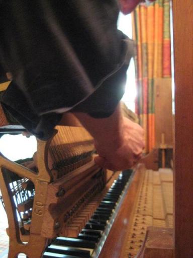 おついたち。秋深まりい~の の 今日このごろです。9月はおおむね 良い天気が続いていたオランダですが、やはり、さすがに 10月の声を聞こうという今週はいきなりの「ダッチウエザー」が絶好調。(ああ......)雨、風、暗、、の三点セット。やっぱり、来たか、、。ちゅう感じです。さて、先週のとある日。ある方に来ていただいて、こんな事をしていただきました。コチラ。さて、何でしょう?分かるかたはスグに分かる写真ですね。ひっぱる話でもないので、スグに次の写真、どんぞ。開いたところ。そして、はい。もうお分かりですねー。調律師さんに ピアノの調律をしてもらったちゅうわけです。ま、そんだけの話。このピアノ。御歳、100年は経っている ドイツ製のピアノです。オットのおばあさんが子供の頃に弾いていたというピアノ。おばあさんが生きておられたら、もう100歳は超えておられるので、そういう計算に。鍵盤の上には、真鍮のロウソク立てが付いています。装飾でもなんでもなくて、おばあさんが子供の頃は本当にここにロウソクを立てて ピアノを弾いていたと 聞きました。ううむ。おばあさんが生きてらしたころ、彼女の家に 忘れられたように置いてあるのを見るにつけ、「ええなあ~~」と指を加えて見ていたアタシだったのですが、その思いが通じてか、(その視線に耐えられなくなったのか、、へへ)「アタシは、もう弾くことがないから 欲しければあげる」ということでかれこれ10年ほど前、ミュンヘンから オランダまではるばる運んで来たというわけです。昔のピアノなので、重いのなんの。鍵盤も重い。しかし、その音色は、なんとも言えずまろやかで、弾く人が弾けば、それはそれはスンバラシイのです。注)弾く人。。。息子のピアノの先生、、。(涙)でも、さすがに古いピアノなので、うまく出ない音がちょこちょこ。調律師さんのスゴ腕で、音は甦ったものの、彼は、最後にこうアドバイスしてくれました。「なんでもそうなんやけど、このピアノは古いから音が出んのとちゃうねんで。 しょっちゅう弾いて、たくさん弾いてやれば、どんどんええ音になってくるんや。」そうそう。なんでもそうやね。使うことで、生きてくるもの。必要とされることで生き続けられるもの。せいぜい 弾いてやらんとあきませんな。ちゅうわけで、このところ、時間があるとピアノに *触る*ようにしています。.............お隣さんは、ええ迷惑。.........こちら、「触ってもらって生きてます」の 実家の太郎さん。コチラは、押すだけ。今日も「元気」にまいりませんか?人気ブログランキングへ 秋やねえ~、と言いながらたのんます。